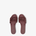 Wide-band slides. Made of burgundy tumbled leather and embellished with hand-sewn tone-on-tone macro Selleria stitching, an emblem of the iconic Selleria workmanship handed down through generations of Fendi artisans since 1925. Tone-on-tone FF Baguette motif.