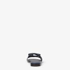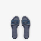 Wide-band slides. Made of mercury blue tumbled leather and embellished with hand-sewn tone-on-tone macro stitching, an emblem of the iconic Selleria workmanship handed down through generations of Fendi artisans since 1925. Tone-on-tone FF Baguette motif.