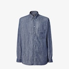 Comfort fit shirt with button-down collar and long sleeves. Patch pocket on the chest. Visible button closure. Made of blue cotton chambray. Embellished with FF detail embroidered on the front pocket.