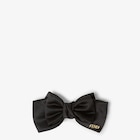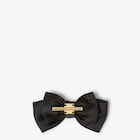 Bow-shaped hair clip. Made of black silk. Decorated with the Fendi Roma lettering in metal on the front. Gold-finish metalware.