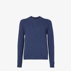 Long-sleeved crew-neck sweater. Regular-fit style. Ribbed edges. Made of airforce blue cashmere yarn, crafted in a knit that sculpts the raglan cut and underarm. Embellished with an embossed micro FF detail at the center of the chest.