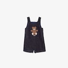 Baby dungarees in navy blue denim with Fendi bear embroidery on the front.