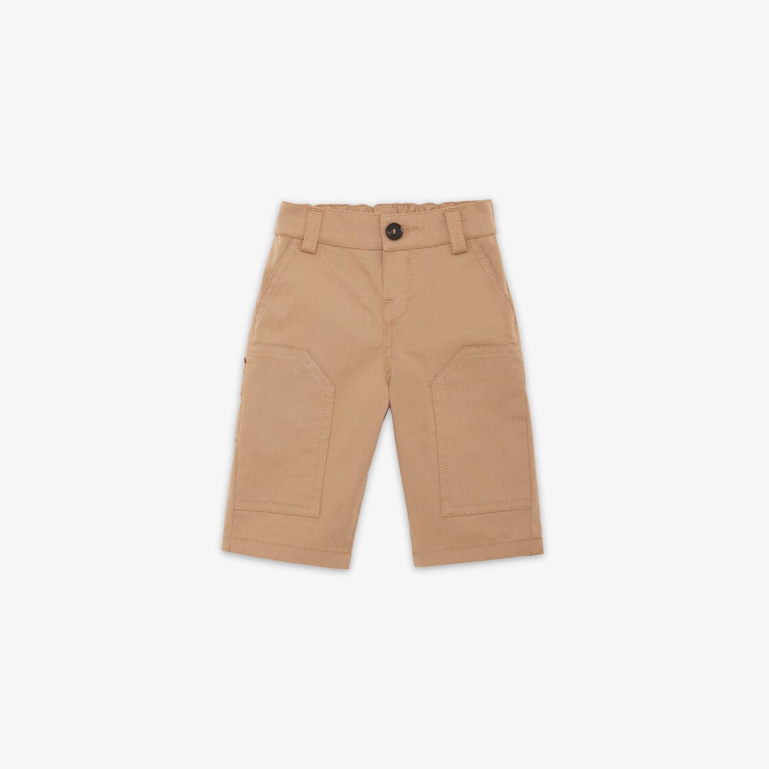 Baby pants in beige stretch gabardine with side pockets. Tobacco FF logo jacquard patch on the back.