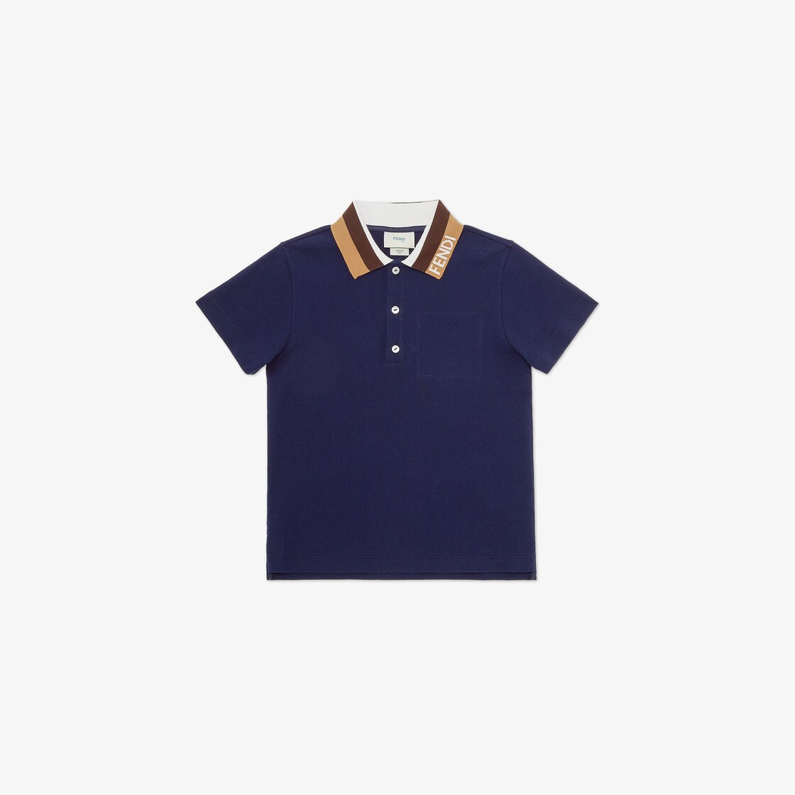 Dark blue cotton piqué junior polo shirt with brown Fendi logo details on the collar.
