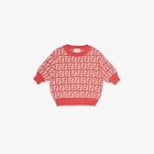 Junior crop top in a cotton and wool crochet-effect knit with all-over FF logo in white and coral.