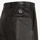 Straight-cut pants with side pockets and double welt pockets on the back. Belt loops at the waist. Finished with center slits in the hem at the back. Concealed closure with button and zipper. Made of soft, black plongé. Embellished with a palladium-finish metal FF detail at the back.