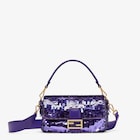 Hand-embroidered with light blue sequins of different shapes and sizes. Embellished with tone on tone calfskin details and decorated with an FF clasp.