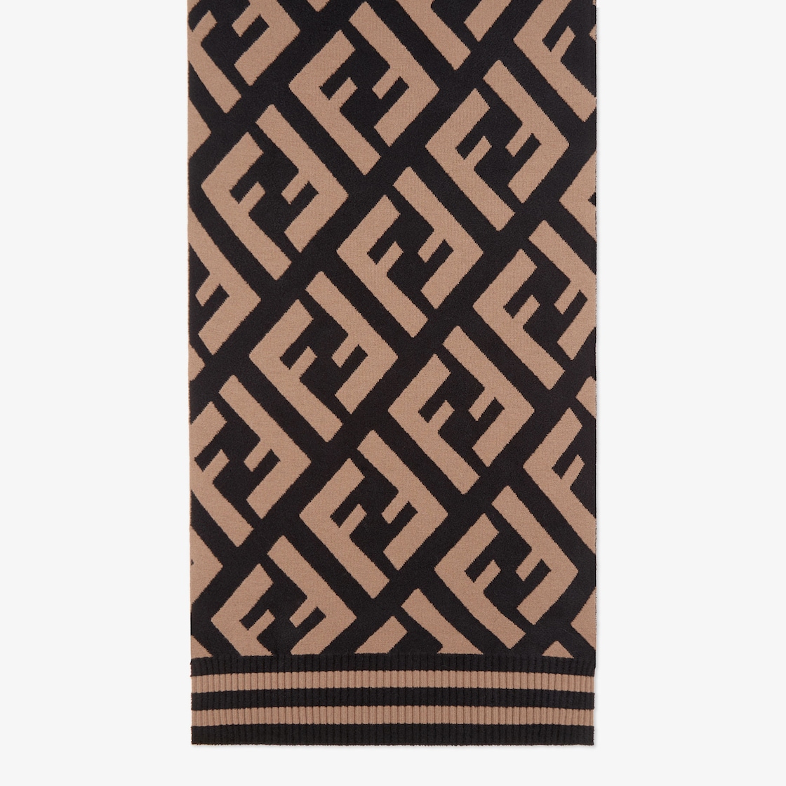 Scarf made of an exquisite blend of wool and viscose with a soft, compact feel. The jacquard weave creates the iconic macro FF motif in tones of black and brown.
