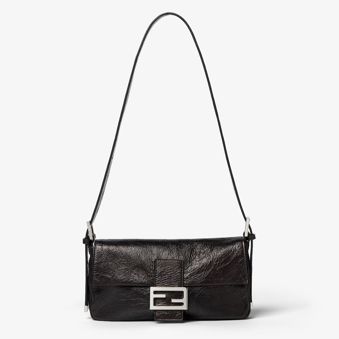 Icono de la audaz creatividad de la Maison desde 1997, recreado según el código del modelo original, número 26424, para la colección Otoño⁄Invierno 2026-27. Está confeccionado en piel de becerro craquelada negra y destaca por su asa y bandolera totalmente ajustables y extraíbles, que ofrecen máxima versatilidad, así como por la hebilla FF con acabado en paladio. El bolso con solapa frontal y cierre magnético se completa con un interior completamente forrado, bolsillo interior con cremallera y herrajes con acabado en paladio.